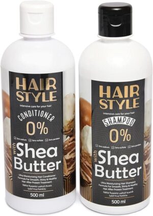 مجموعة تصفيف الشعر فائقة النعومة والمرطبة مع مستخلص زبدة الشيا شامبو تصفيفة الشعر ينظف ويرطب وينعم الشعر بعمق. مناسب للشعر المصبوغ، ويحافظ على اللون لفترة أطول. المكونات: زبدة الشيا – بروتين القمح – الكولاجين – اللانولين – خلاصة الصبار – بلسم تصفيفة الشعر بزيت بذور الجوجوبا يرطب وينعم بعمق ويغذي ويحفز نمو الشعر ويمنع تقصف الأطراف. المكونات: زبدة الشيا – زيت الأرغان – زيت جوز الهند – زيت اللوز الحلو – زيت الأفوكادو – زيت الجوجوبا وفيتامين E – بروتين القمح. كيفية الاستخدام: ضعي كمية مناسبة من الشامبو على الشعر المبلل، ودلكي فروة الرأس بلطف، ثم اشطفيه. بعد استخدام الشامبو، دلكي الشعر بالبلسم واتركيه لمدة 3-5 دقائق، ثم اشطفيه جيدًا.