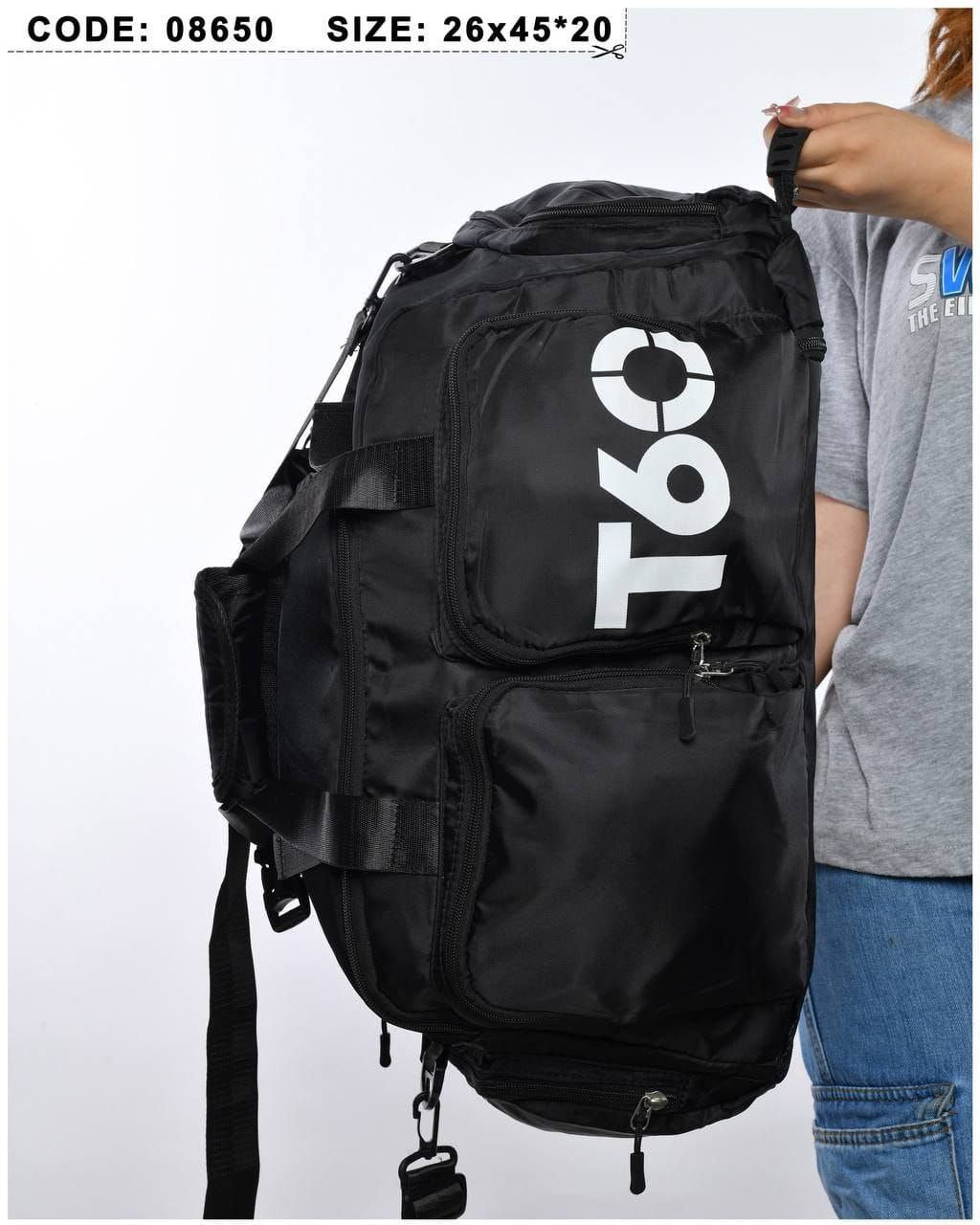 حقيبة T60 إصدار جديد رياضية/حقيبة ظهر مع جيب حذاء مقاوم للماء / أسود