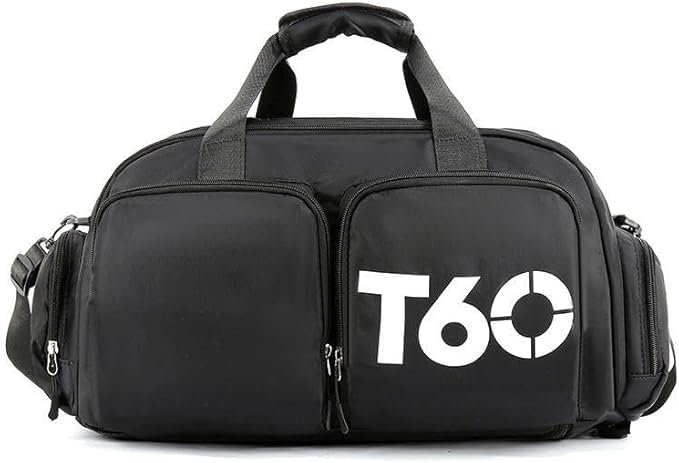 حقيبة T60 رياضية/حقيبة ظهر مع جيب حذاء مقاوم للماء / أسود