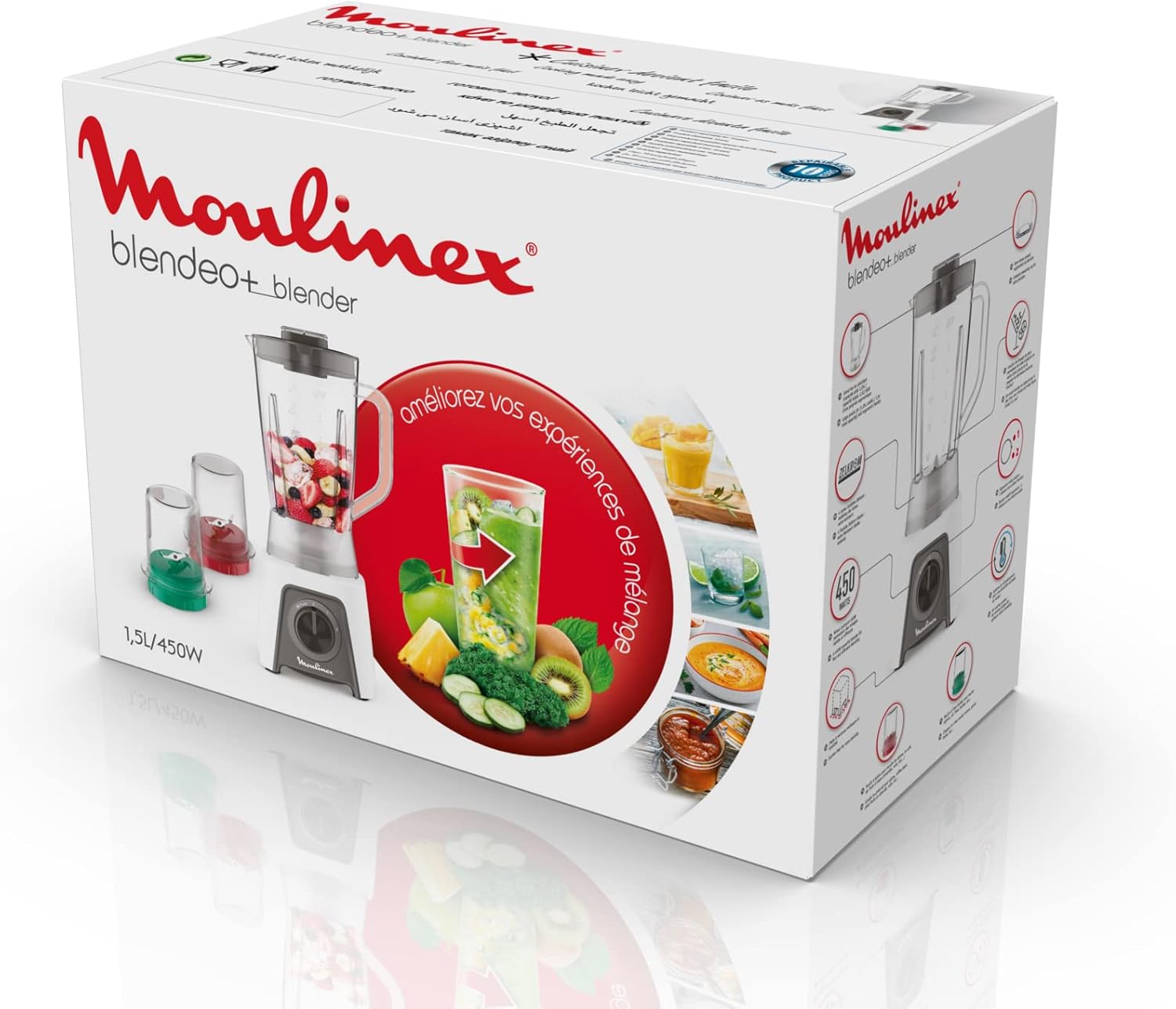 خلاط مولينكس بلينديو مع ملحقاته 1.5لتر 450واط أبيض LM2C3126 6224008208457