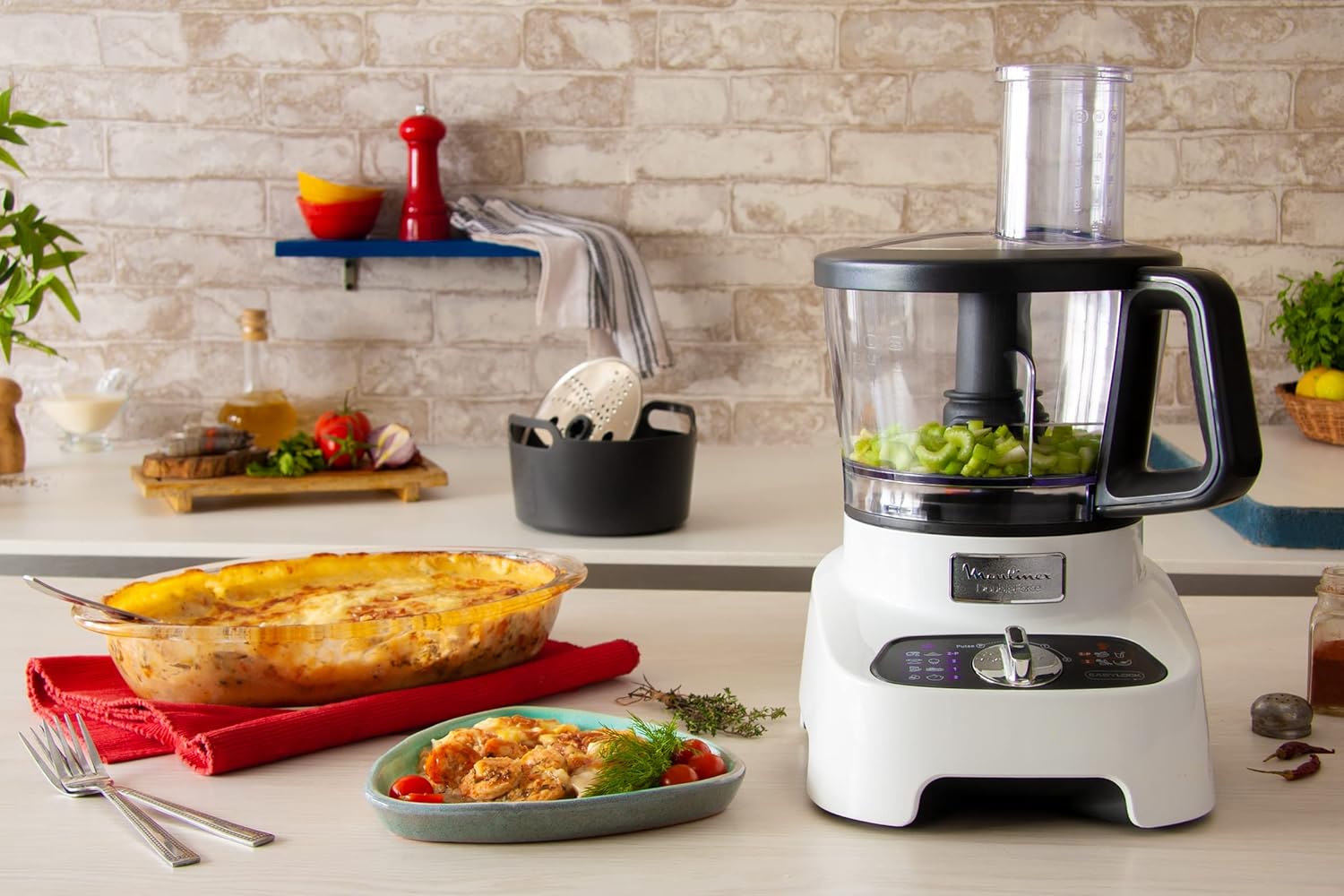 Moulinex FP823125 Double Force Food Processor 1000W 27 Functions 3L Bowl 2L Blender Manual Control Panel Easylock Safety System White and Black 6221064050815